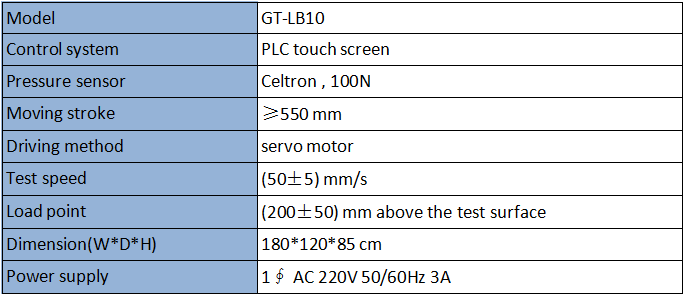 Rolling resistance testing machine applies to all chairs with caster, to evaluate rolling resistance of the unloaded chair.